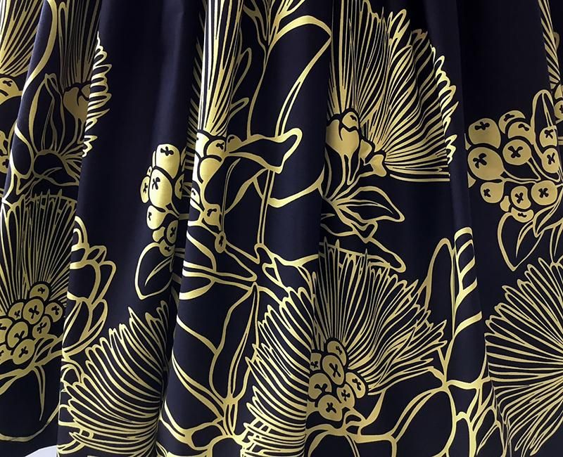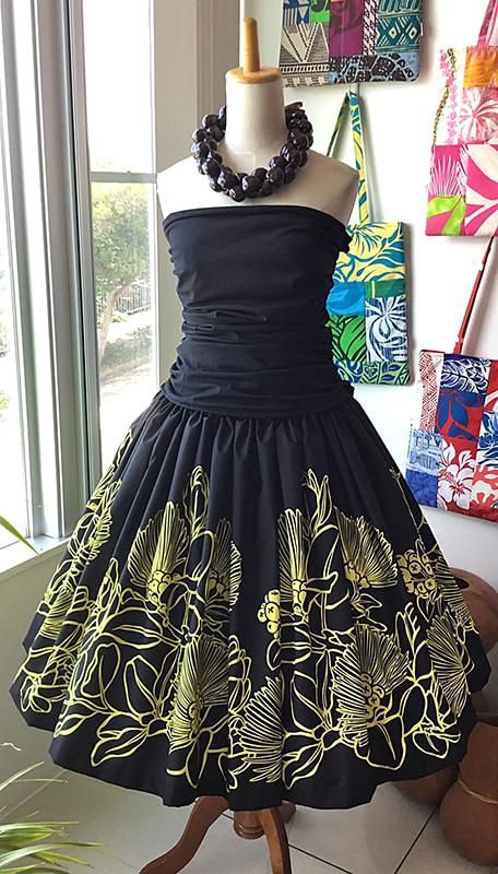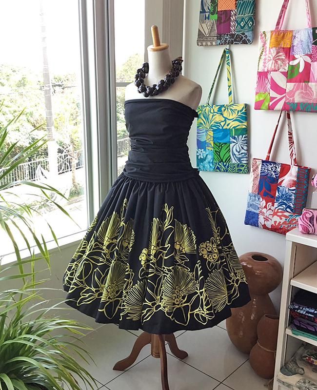 TOP > ラスト1点‼️【既成】Pink Lei シングルパウ ブラック&レモンイエロー・レフア柄 ウエストゴム4本 丈73cm