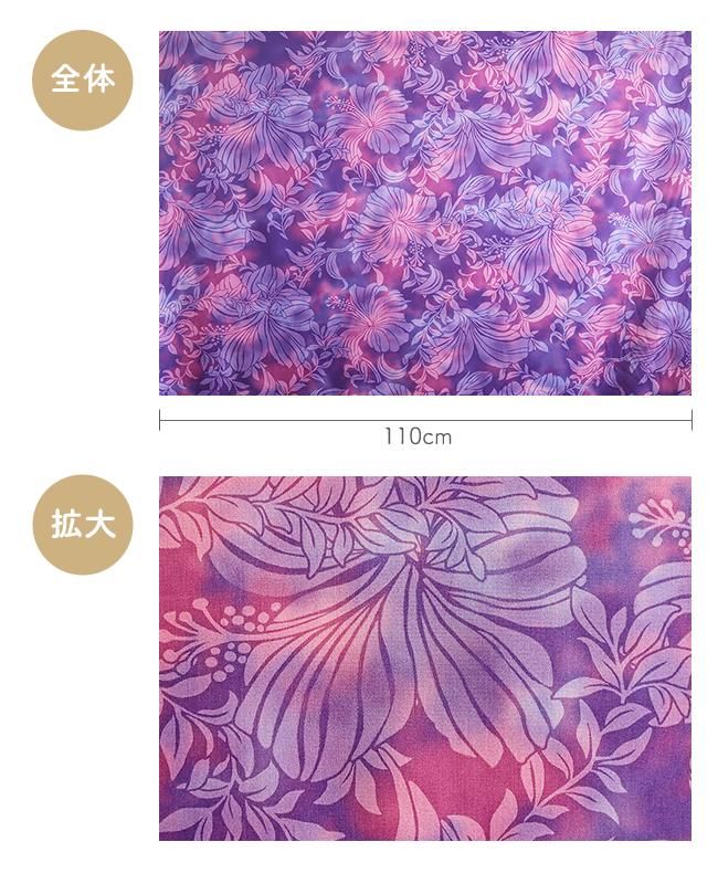 ハワイアンファブリック ハイビスカス総柄 パープル&ピンク(タイダイ)