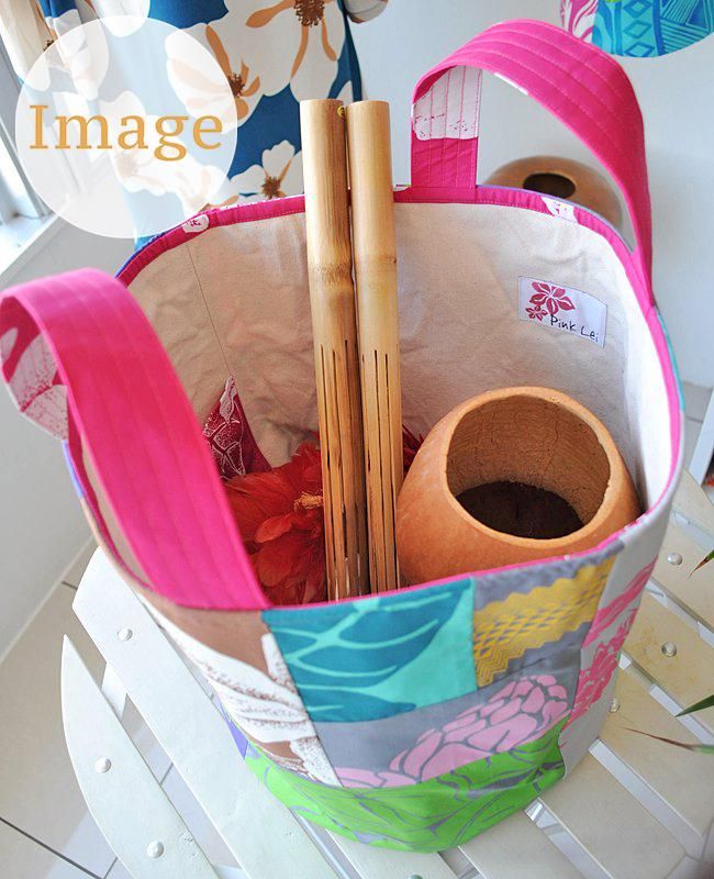 TOP > 〜新商品〜ハワイアンパッチ・バケツバッグ(L)パステルピンク&エメラルドグリーン【1点もの】