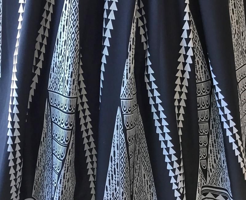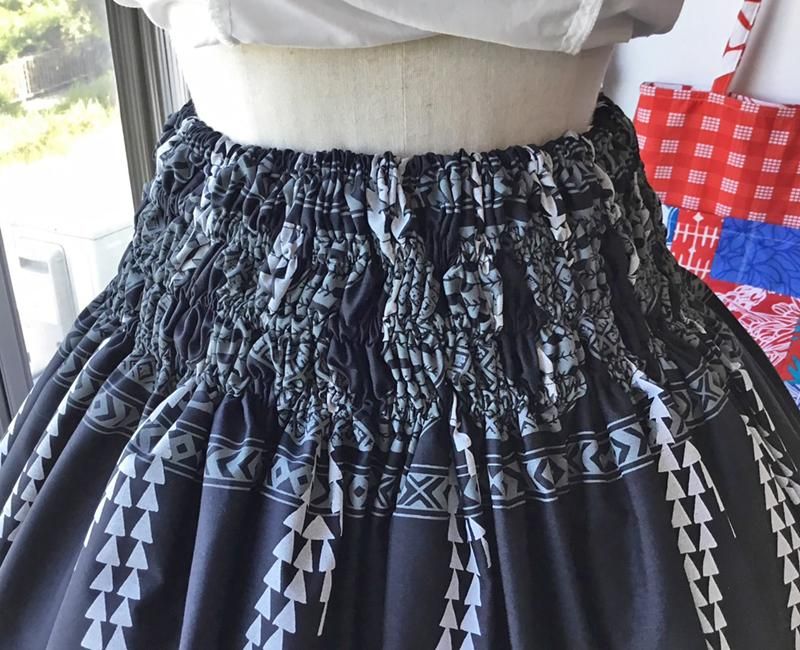 TOP > 【既製】Pink Lei シングルパウ ブラック&ホワイト・ニューカヒコ柄 ウエストゴム4本 丈73cm(ギャザーなし)