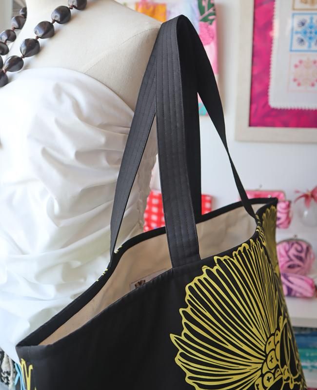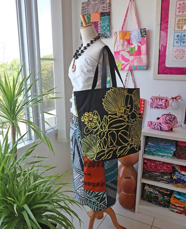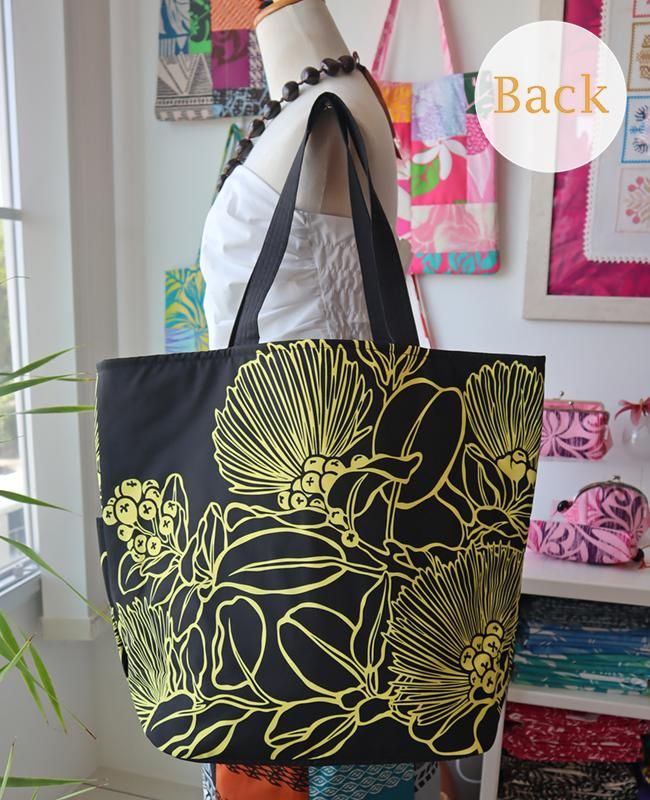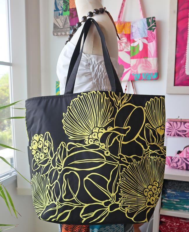 Pink Lei【1点もの】デイリートートバッグ ブラック&ネオンイエロー/レフア柄