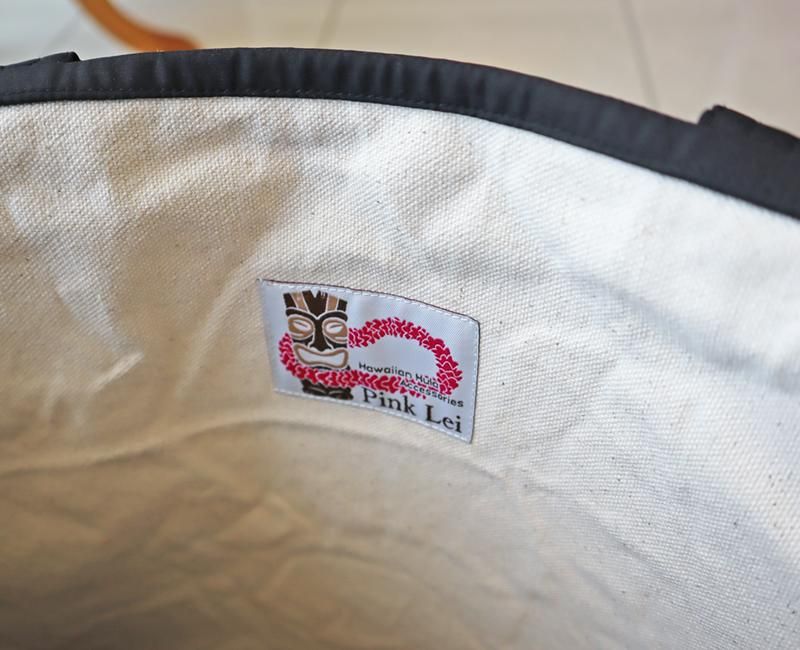 ハワイアンファブリック特有の華やかな柄が目を引くシンプルな作りながら、使いやすさ重視のこだわりをたくさん詰め込んだデザイン。