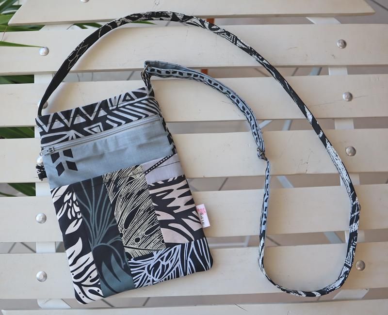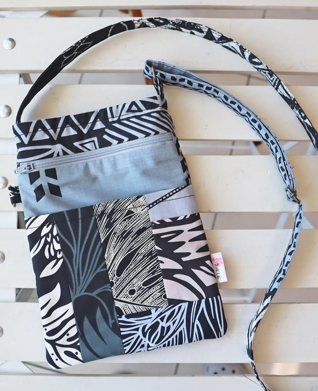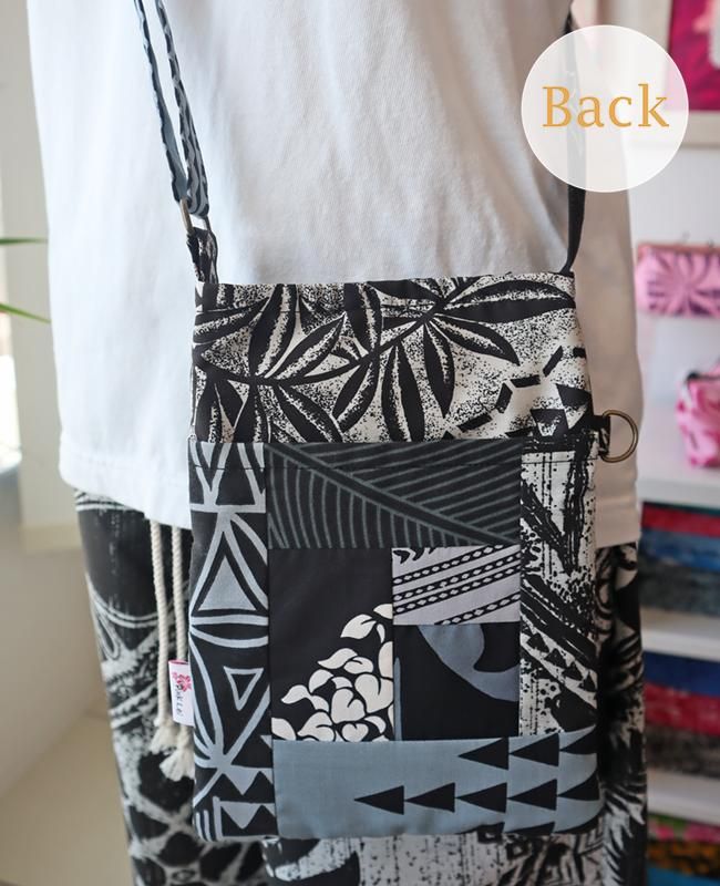 TOP > 新商品 Pink Lei 【1点もの】ハワイアンパッチ・サコッシュ(マグネットtype) ブラック&グレー&ベージュ