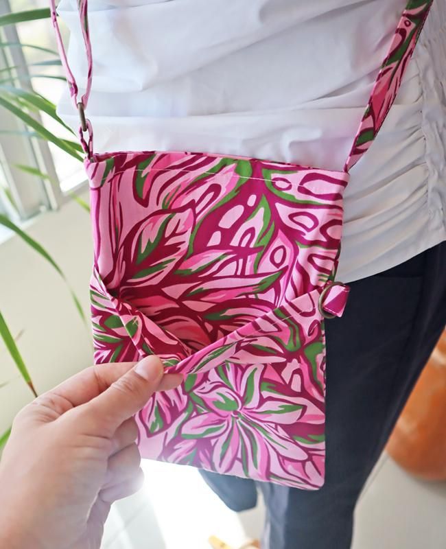 TOP > 新商品 Pink Lei 【1点もの】サコッシュ(ポケットtype) ピンクパープル&グリーン・ティアレ柄