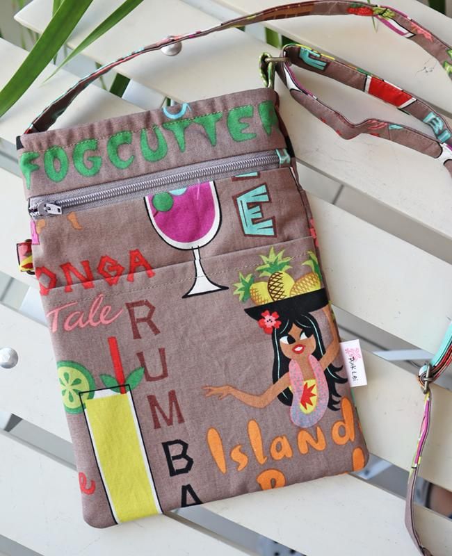 新商品 Pink Lei 【1点もの】アレクサンダーヘンリー サコッシュ(ポケットtype) Cocktail/カクテル Brown Gray/ブラウン