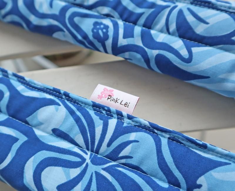 TOP > 〜Pink Lei オリジナル〜 シートベルトカバー ブルー&ライトブルー/トロピカルフラワー&リーフ柄【1点もの】