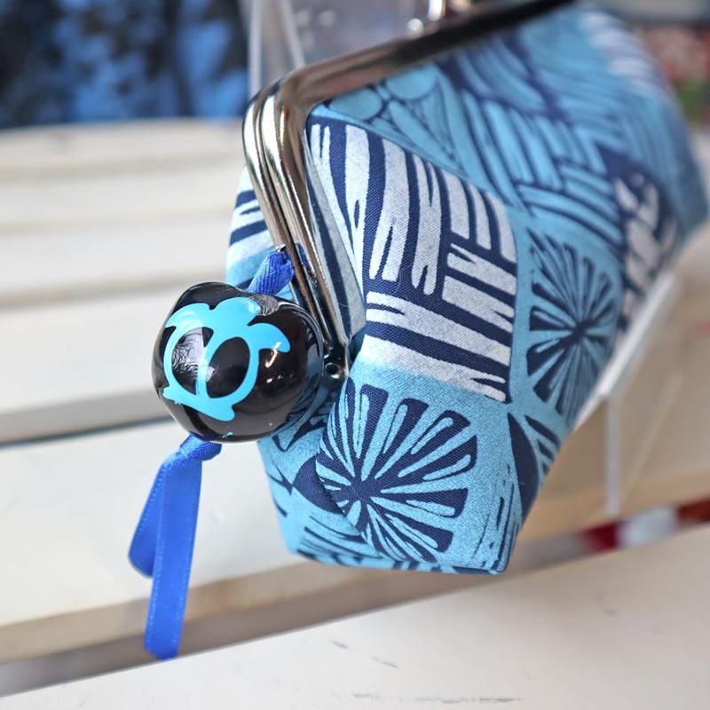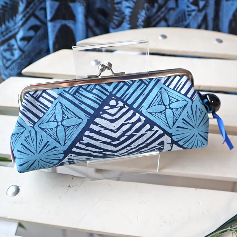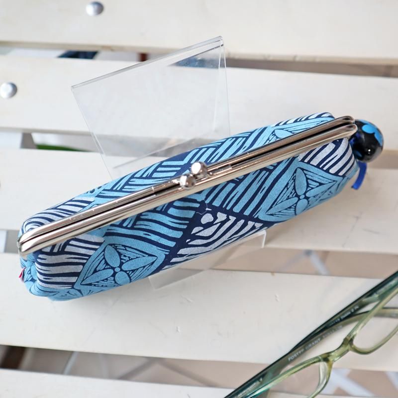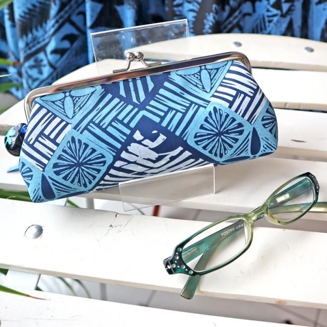 TOP > Pink Lei オリジナル【1点もの】 がま口・サングラスケース ブルー&ホワイト・スクエアモチーフ柄