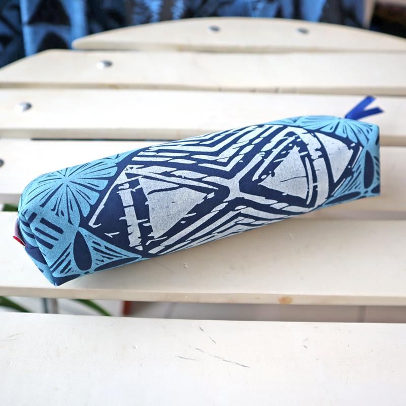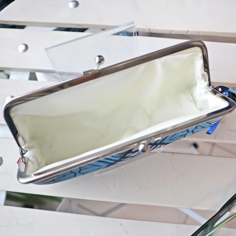 Pink Lei オリジナル【1点もの】 がま口・サングラスケース ブルー&ホワイト・スクエアモチーフ柄