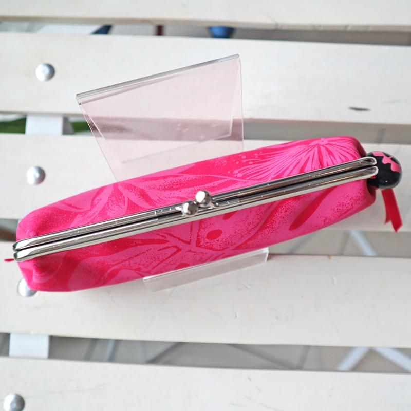 TOP > Pink Lei オリジナル【1点もの】 がま口・サングラスケース ホットピンク・トロピカルフラワー&リーフ柄