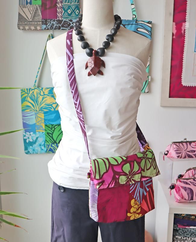 キルト作家さんとコラボして出来上がったオンリーワンのハワイアンパッチ・サコッシュ(大サイズ)です。