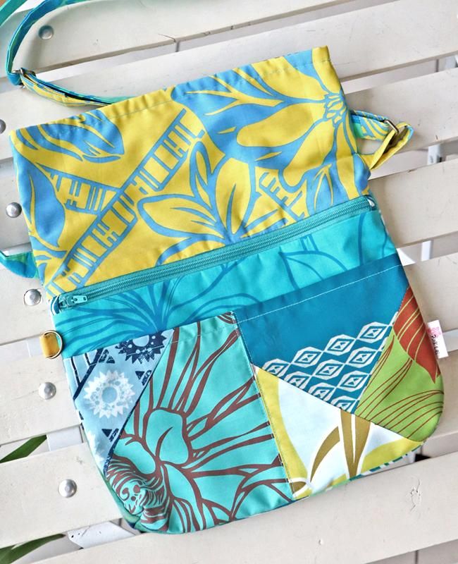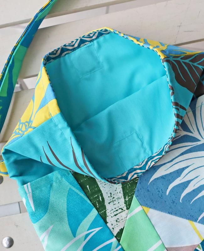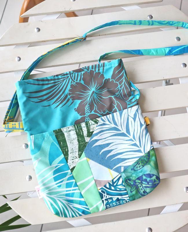 TOP > 新商品 Pink Lei 【1点もの】ハワイアンパッチ・サコッシュ(大/マグネットtype) レモンイエロー&ターコイズ&ブルー