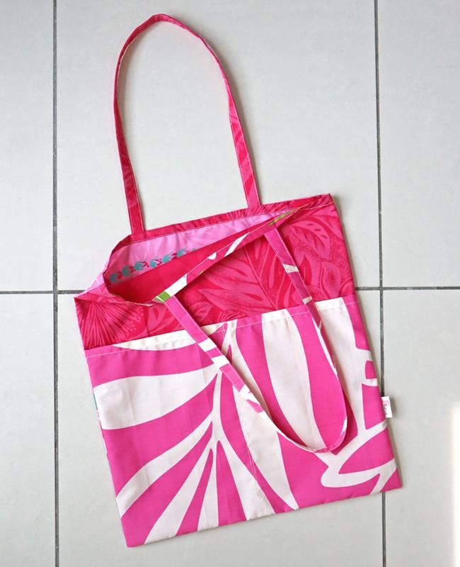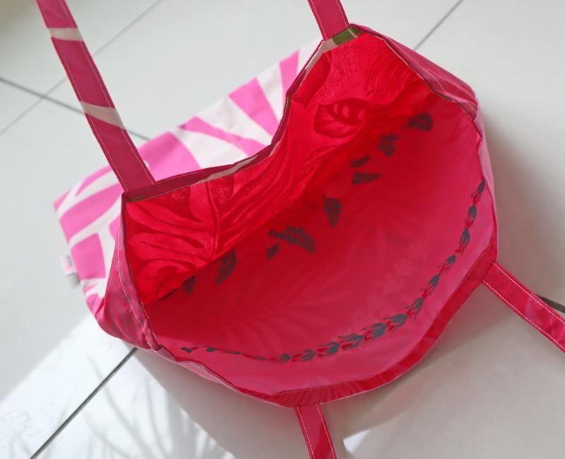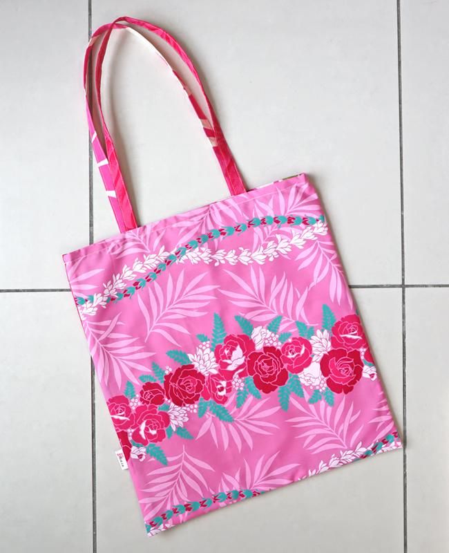 TOP > 【新商品】A4ハワイアンファブリックバッグ ホットピンク&ホワイト・リーフ&ロケラニ&レイ柄【1点もの】