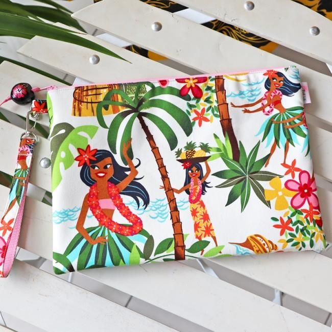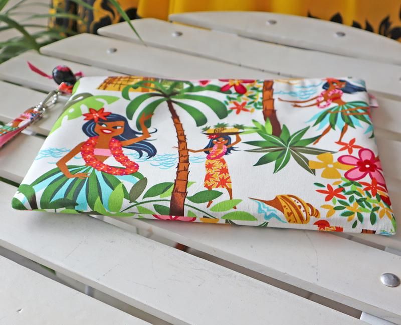 TOP > Pink Leiオリジナル【1点もの】アレクサンダーヘンリー ハワイアンクラッチバッグ/ククイ付き Hulagirl/フラガール White/ホワイト
