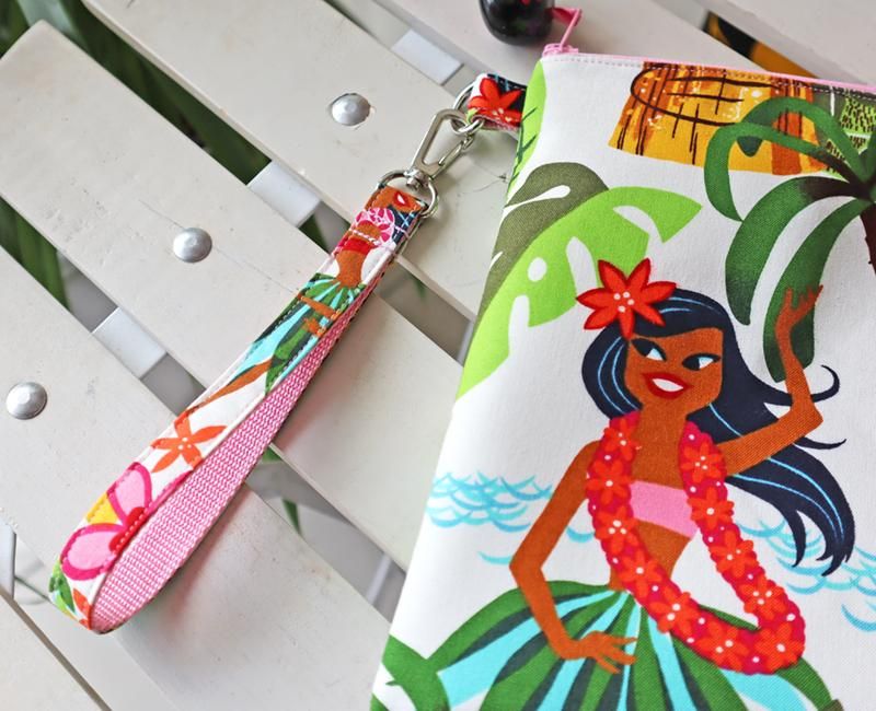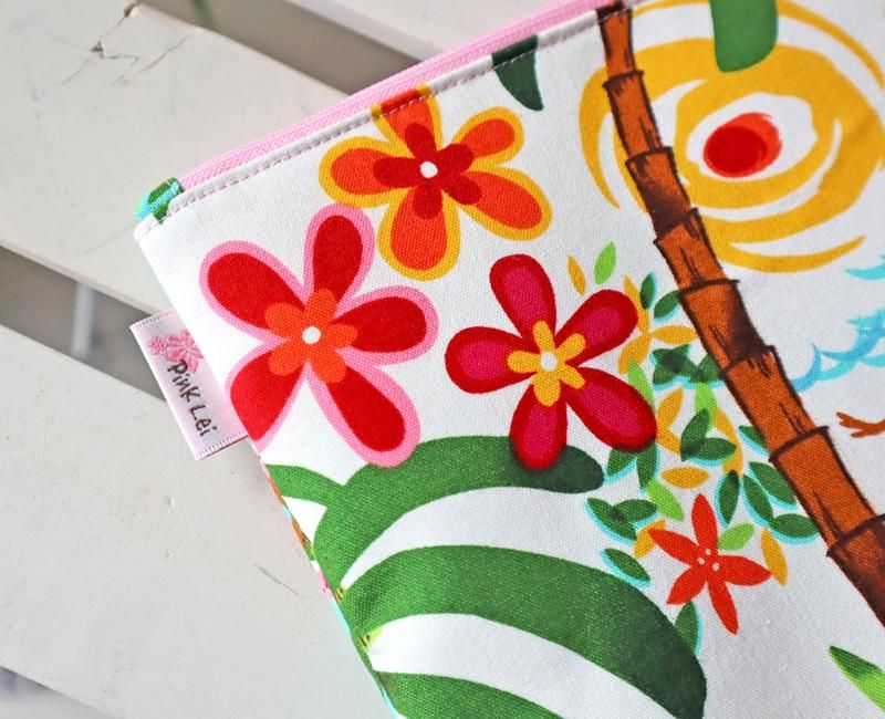 Pink Leiオリジナル【1点もの】アレクサンダーヘンリー ハワイアンクラッチバッグ/ククイ付き Hulagirl/フラガール White/ホワイト