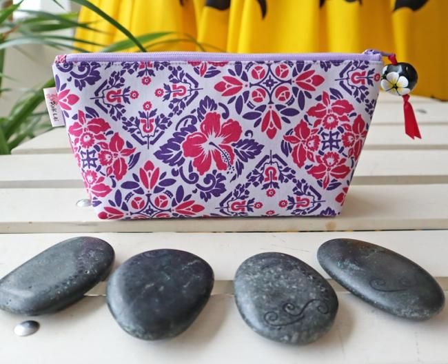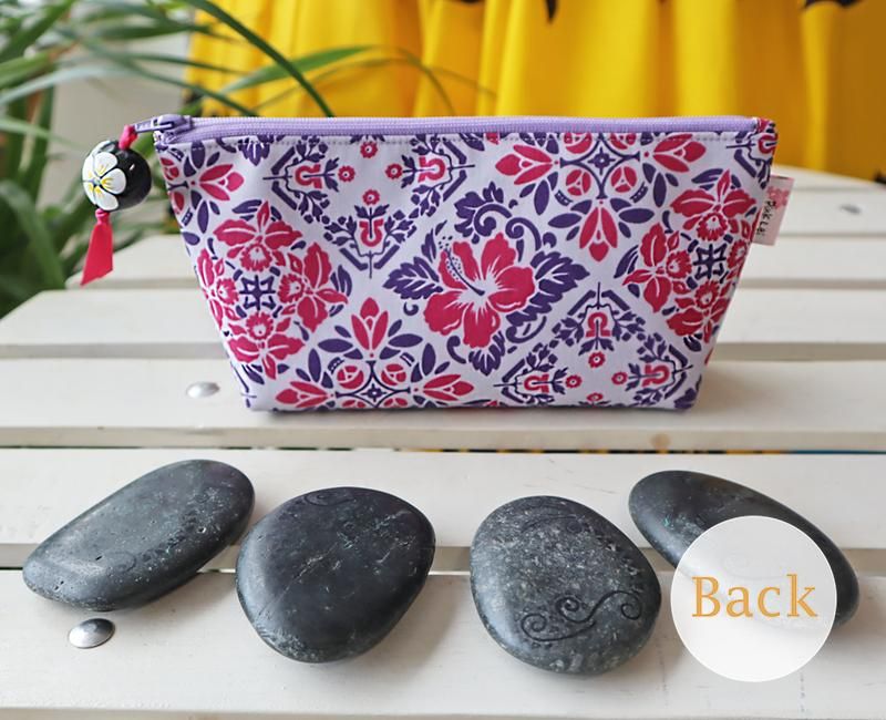 Pink lei オリジナル【1点もの】イリイリケース パープル&レッド・ハワイアンキルト風フラワーモチーフ柄
