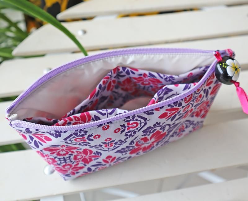 中がしっかり仕切られているので、メイクアップ用品を収納するポーチとしても使用できます。