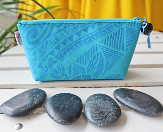 Pink lei オリジナル【1点もの】イリイリケース シアンブルー・トライバル柄