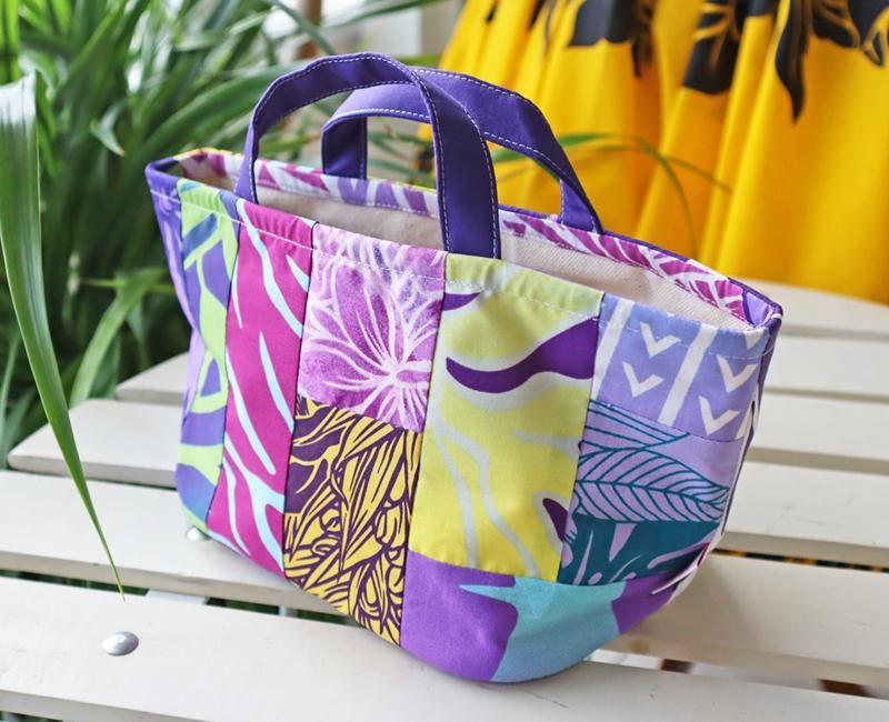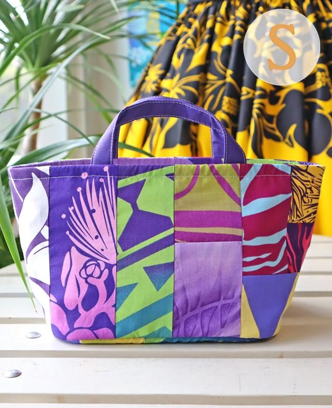 TOP > 〜新商品〜 Pink Lei【1点もの】ハワイアンパッチ・ミニトートバッグS パープルマルチ