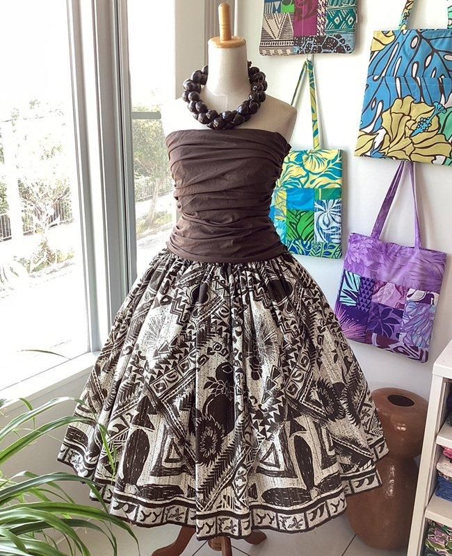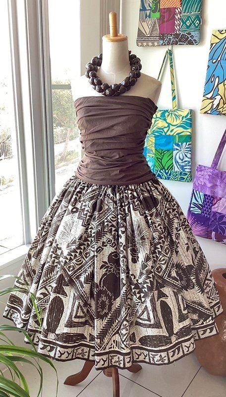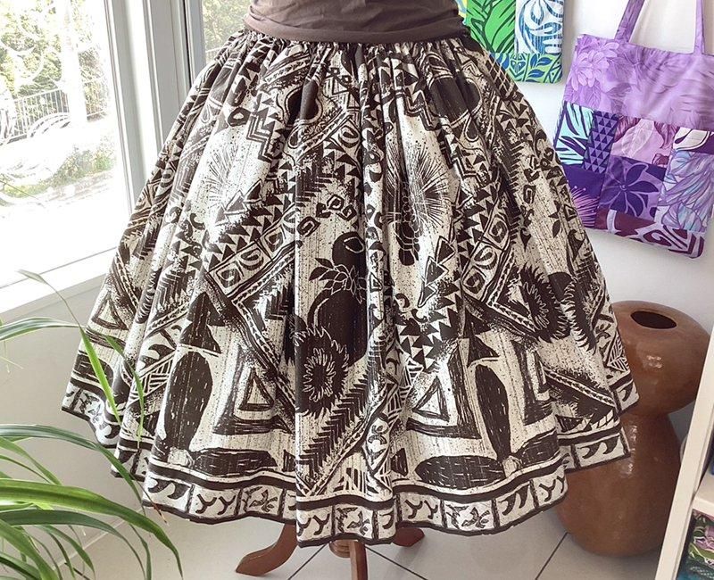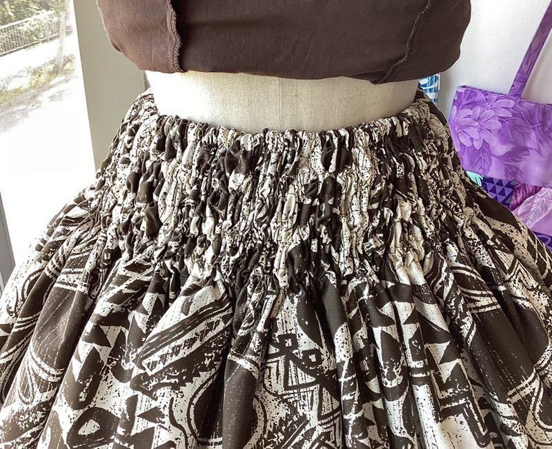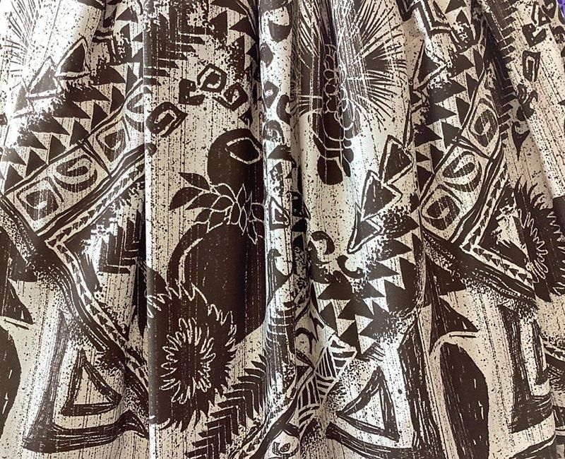 TOP > ラスト1着❣️【既製】Pink Lei シングルパウ オフホワイト&ブラウン・楽器&古典柄 ウエストゴム4本 丈73cm