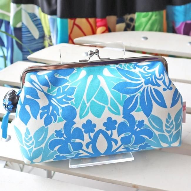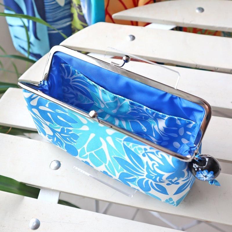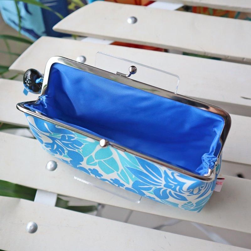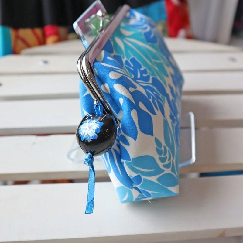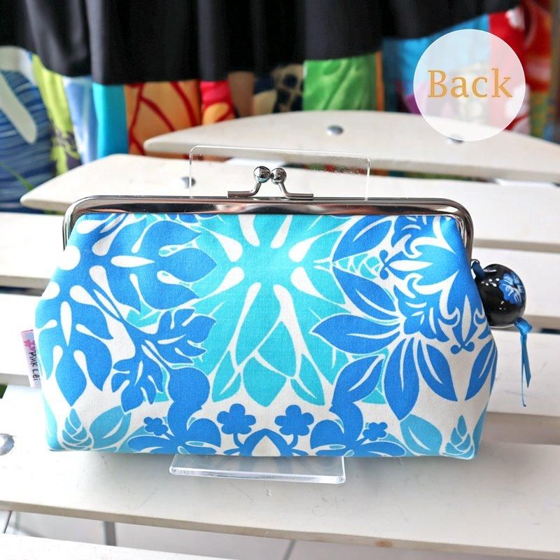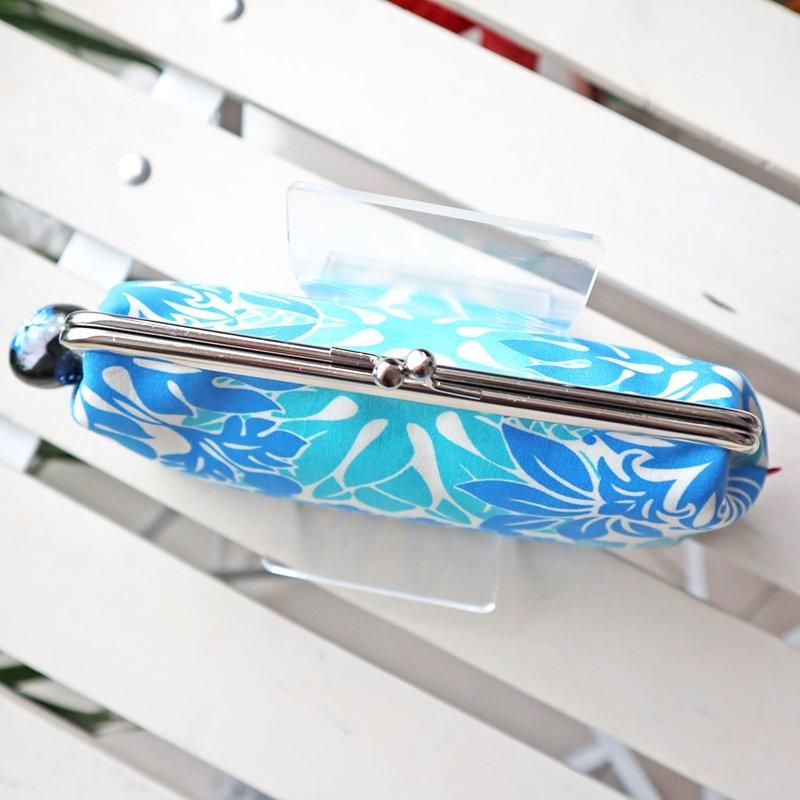 TOP > Pink Lei オリジナル【1点もの】 がま口・通帳ケース ホワイト&ブルー・ハワイアンキルト柄