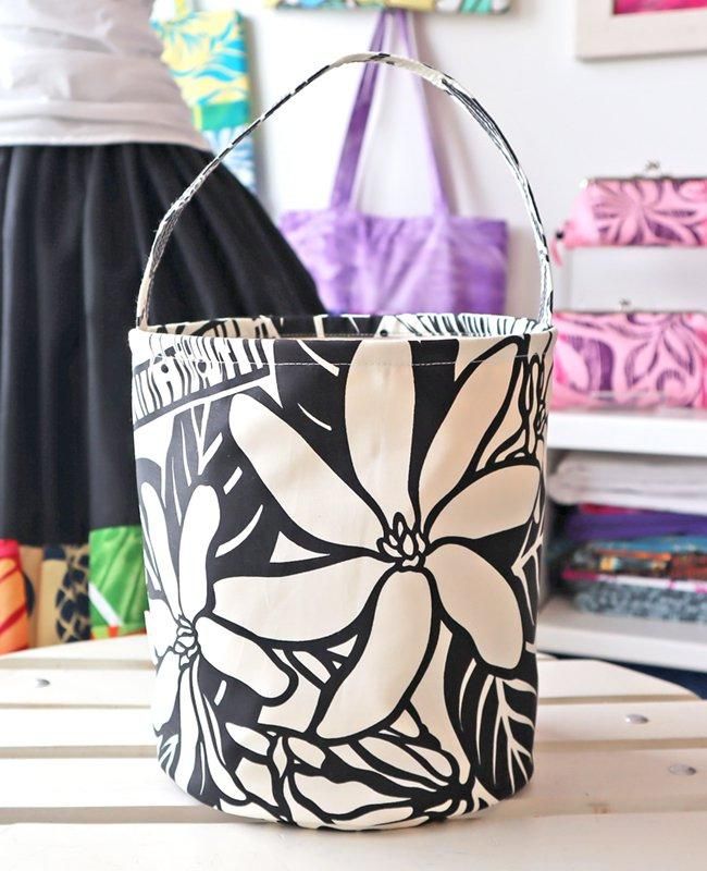 TOP > Pink Lei【新商品】バケツ型バッグ・(S)  ブラック&ホワイト・ティアレ&レフア柄