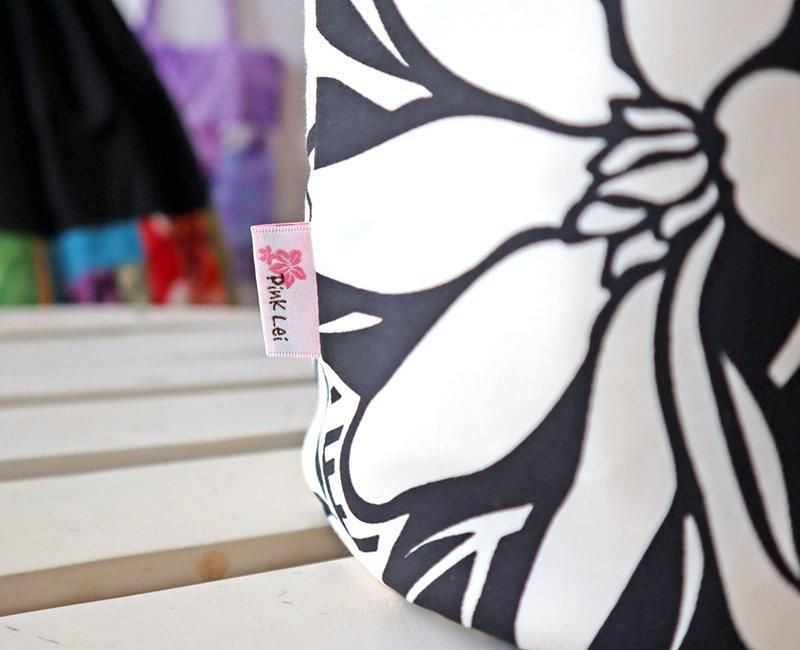 どのアングルから見ても飽きのこないキュートな形と、ハワイアンファブリック特有の華やかな柄が目を引くデザイン。