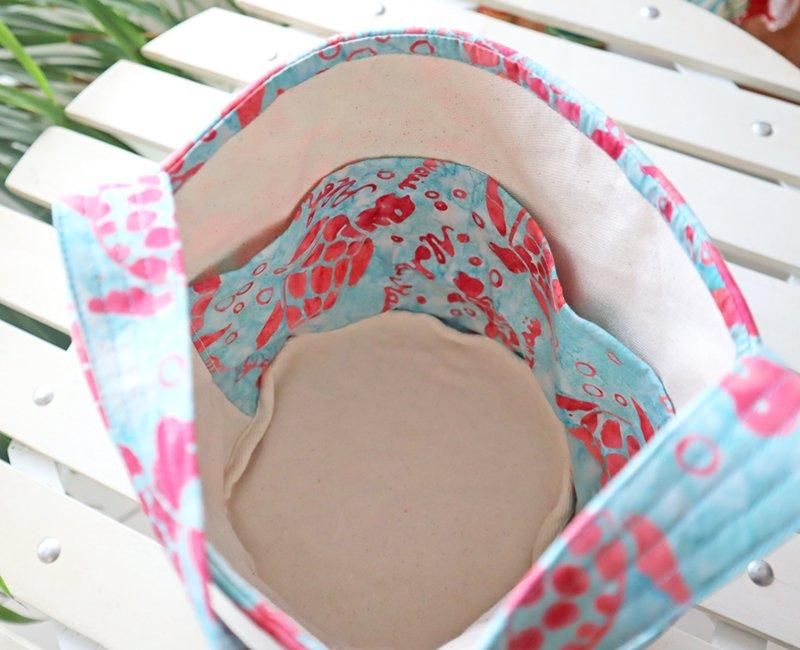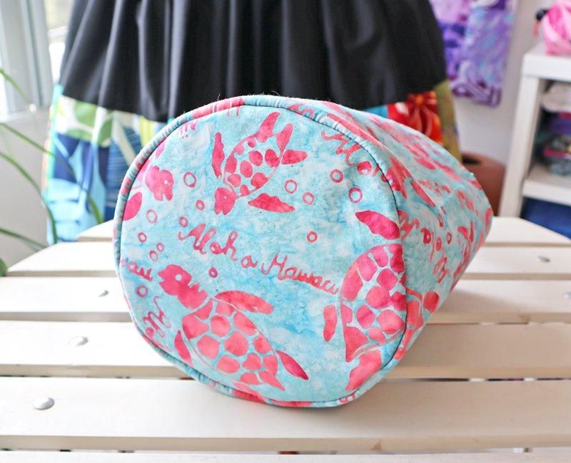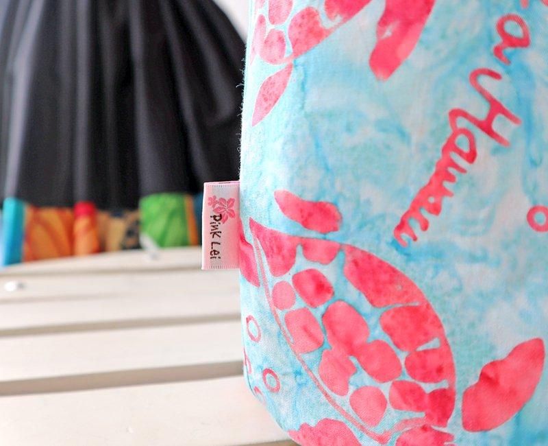 どのアングルから見ても飽きのこないキュートな形と、ハワイアンファブリック特有の華やかな柄が目を引くデザイン。