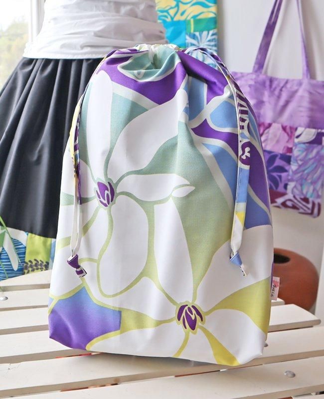 TOP > Pink Lei オリジナル 〜新商品〜 巾着袋 パープル&イエローグラデーション・ティアレ柄【1点もの】