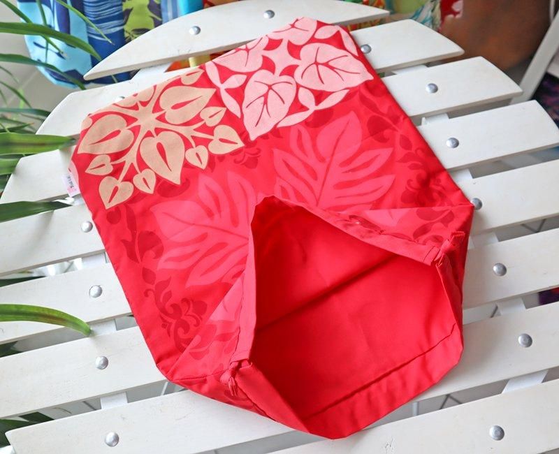 TOP > Pink Lei オリジナル 〜新商品〜 巾着袋 レッド&ベージュ/ハワイアンキルト柄【1点もの】