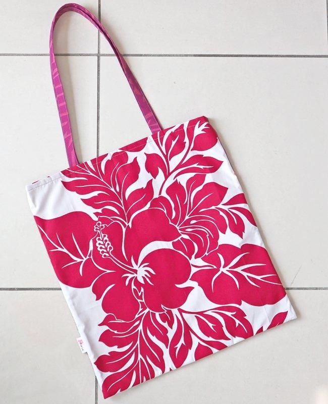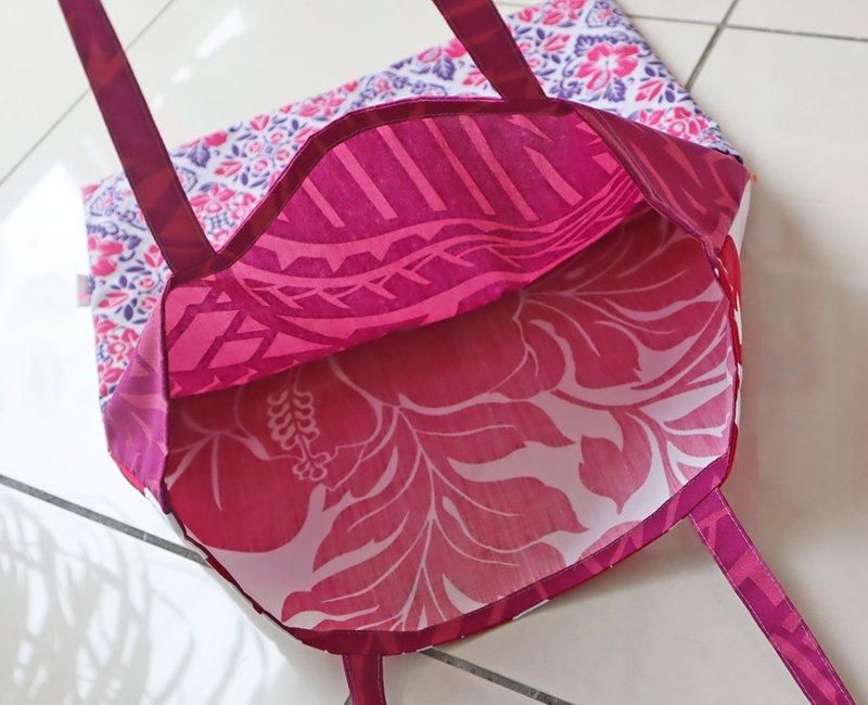 ハワイから直接仕入れた生地を使用した使いやすい"A4サイズのファブリックバッグ"です。
