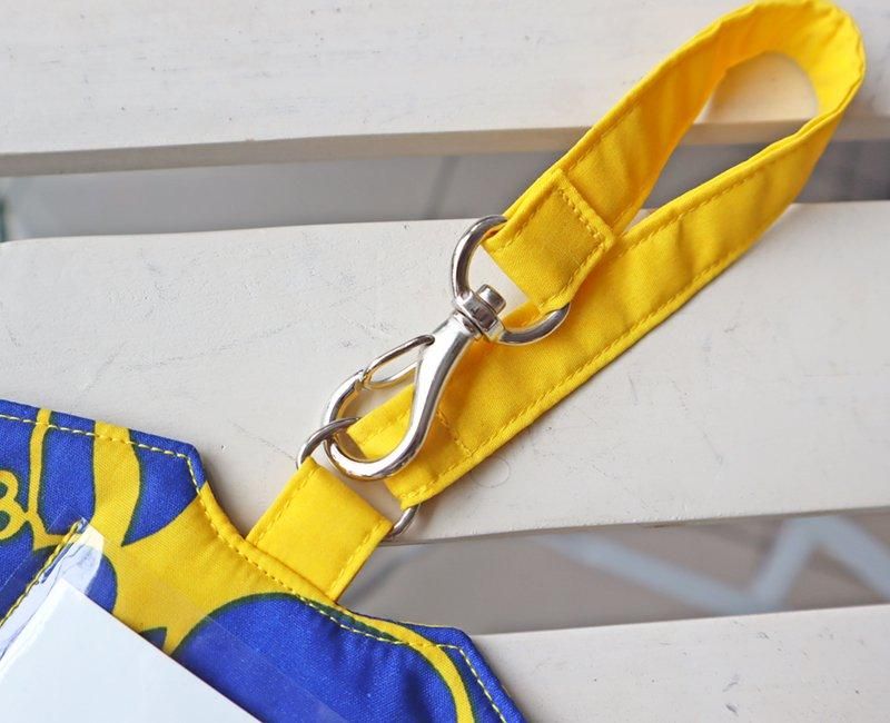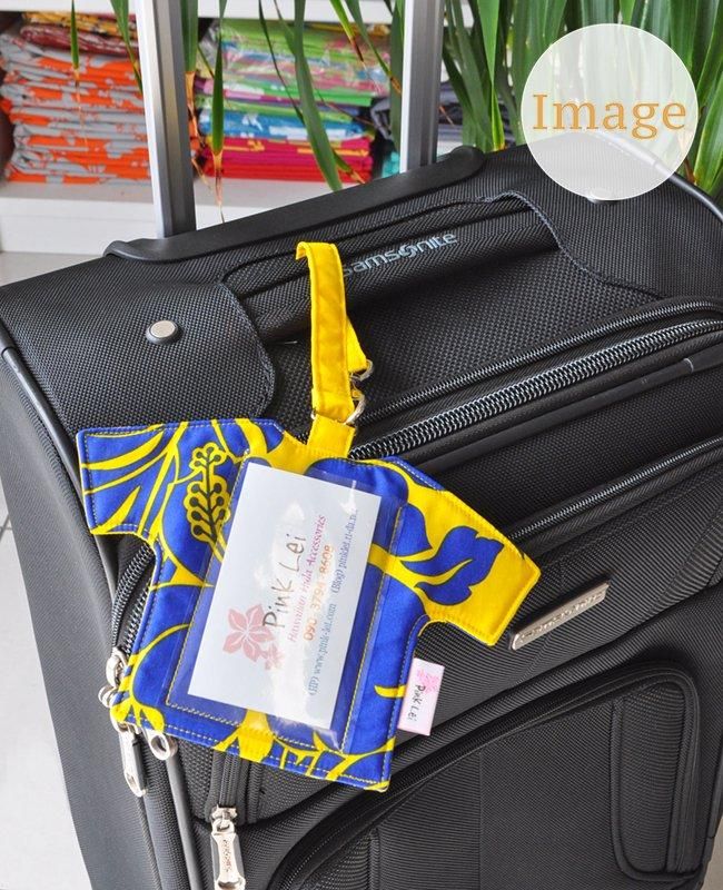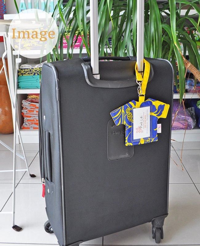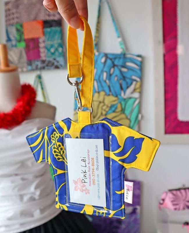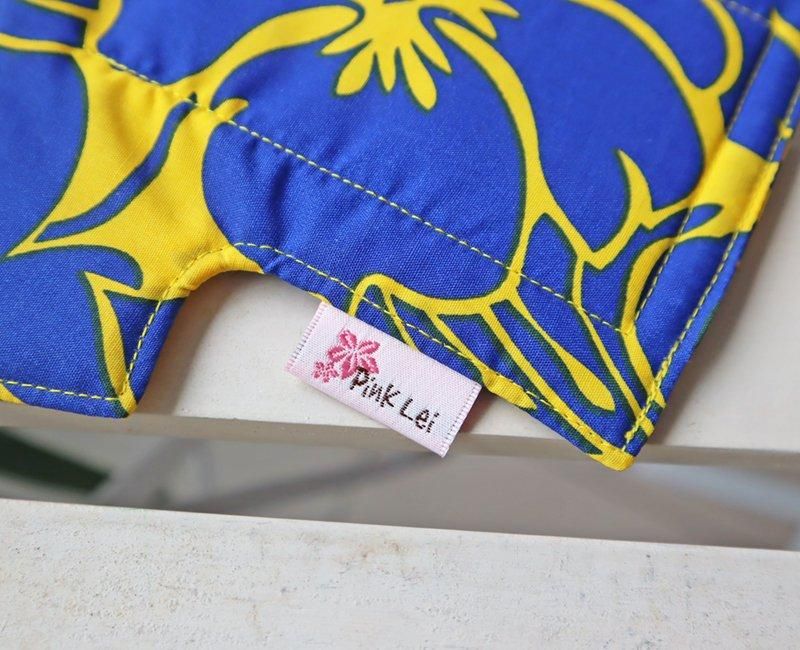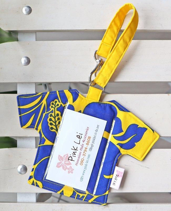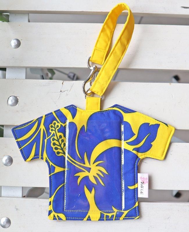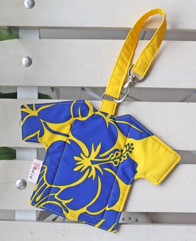 TOP > Pink Lei オリジナル【1点もの】ハワイアンラゲッジタグ イエロー&ブルー・ハイビスカス柄