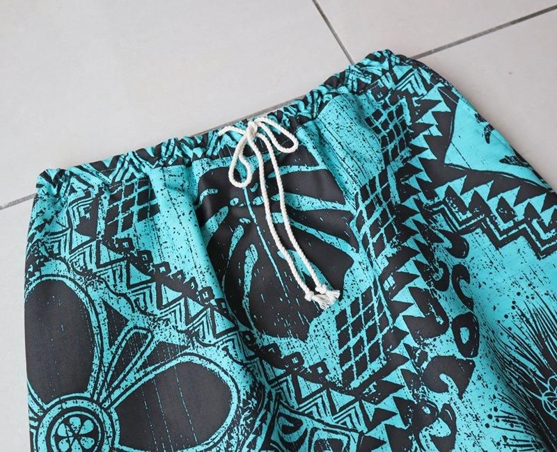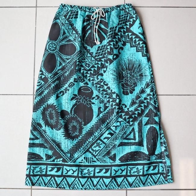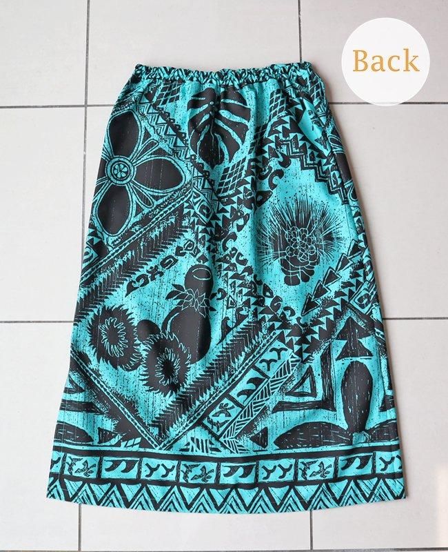 TOP > 【1点もの】 Pink Lei オリジナル オリジナルスカート ターコイズ&ブラック/カヒコ柄