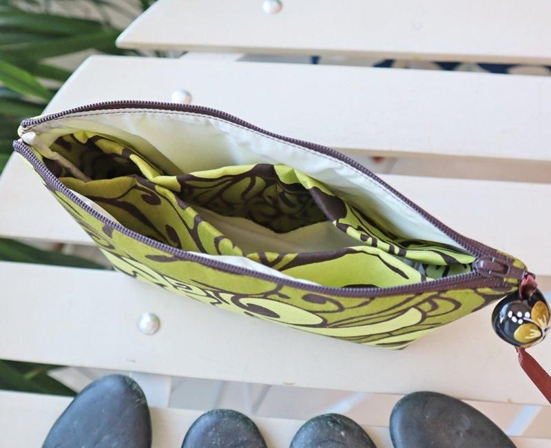 Pink lei オリジナル【1点もの】イリイリケース ブラウン&抹茶グリーン・トライバル風フラワー柄