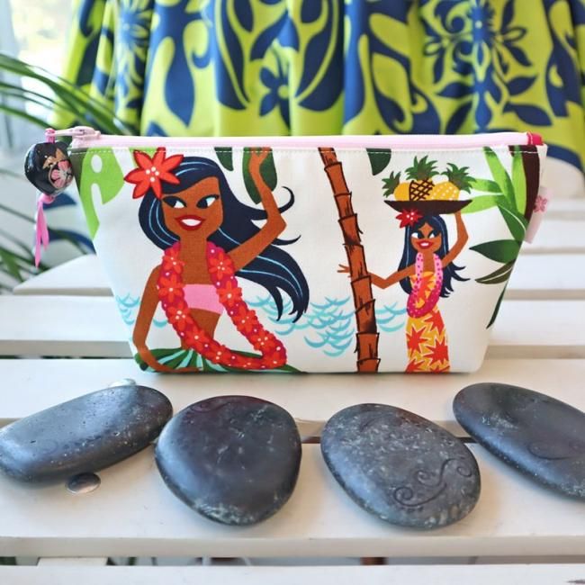 TOP > Pink lei オリジナル【1点もの】アレクサンダーヘンリー イリイリケース Hula Girl/フラガール White/ホワイト