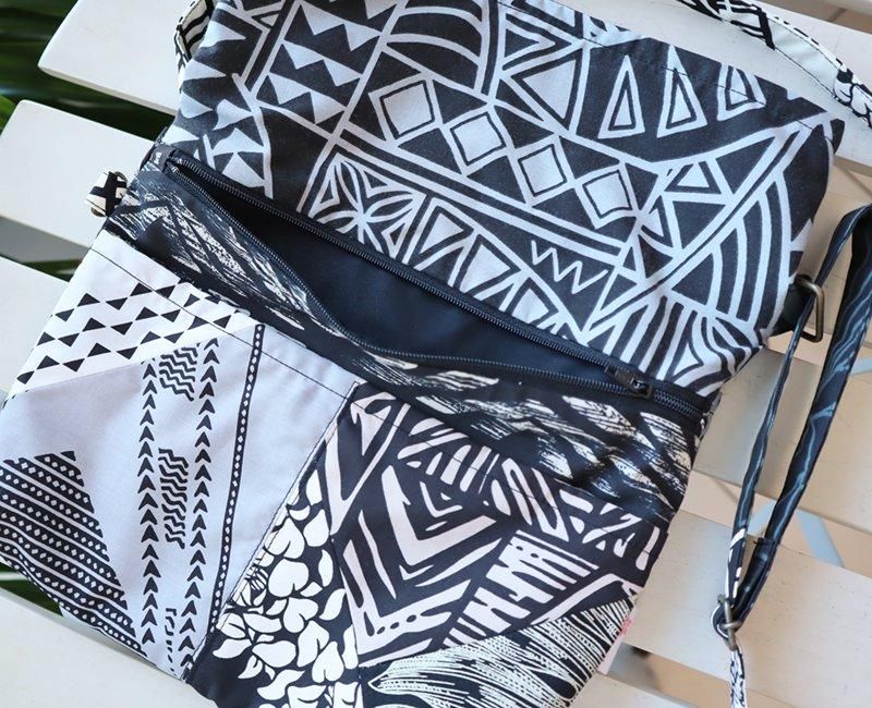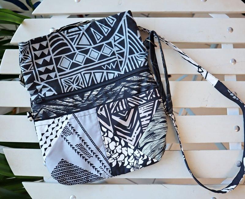 TOP > 新商品 Pink Lei 【1点もの】ハワイアンパッチ・サコッシュ(大/マグネットtype) ブラック&ホワイト&グレー