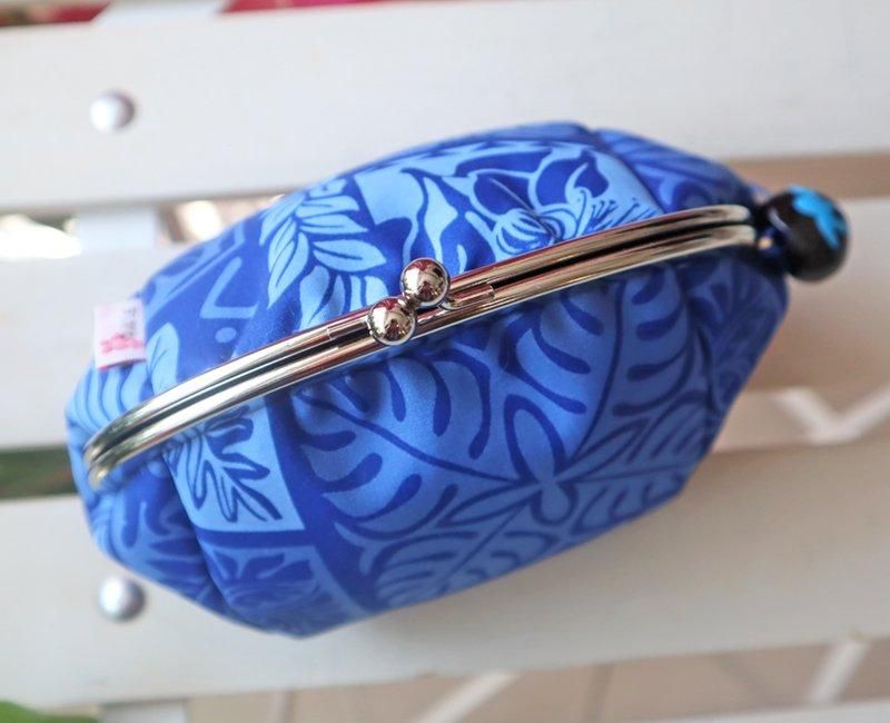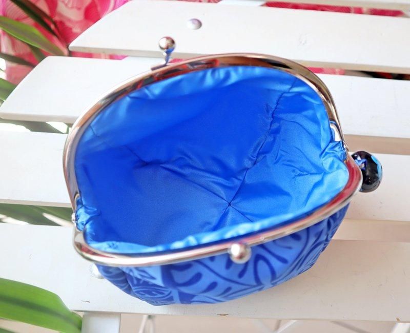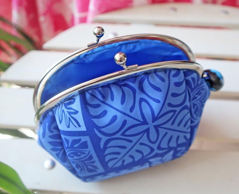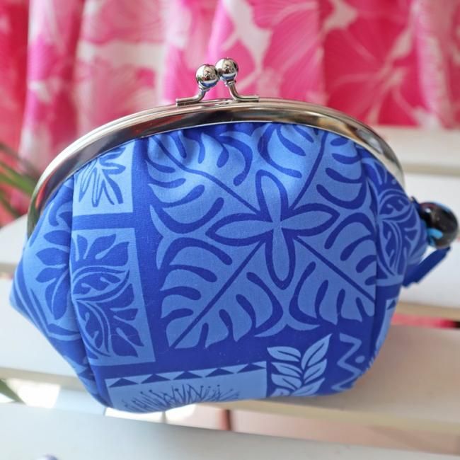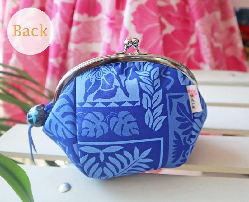 Pink Lei オリジナル【1点もの】 コロコロポーチ ブルー・ハワイアンキルト柄