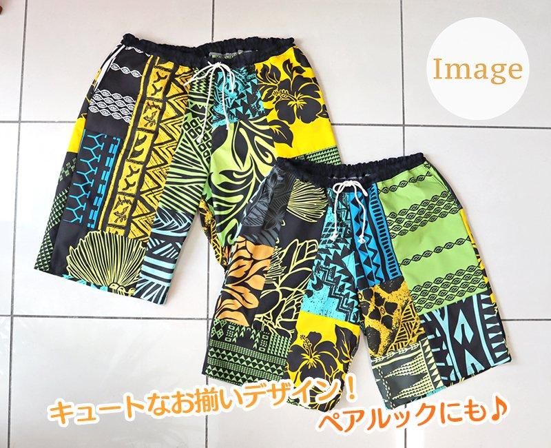 TOP > 【1点もの】 Pink Lei オリジナル/パッチパンツ ショートtype(レディース) イエロー&グリーン