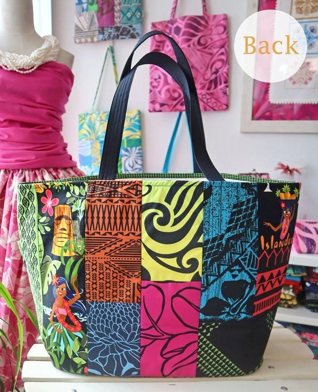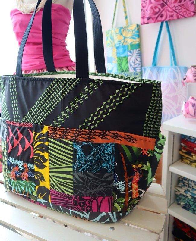 TOP > Pink Lei【1点もの】- ハワイアンパッチ- デイリートートバッグ(XL) ブラックマルチ