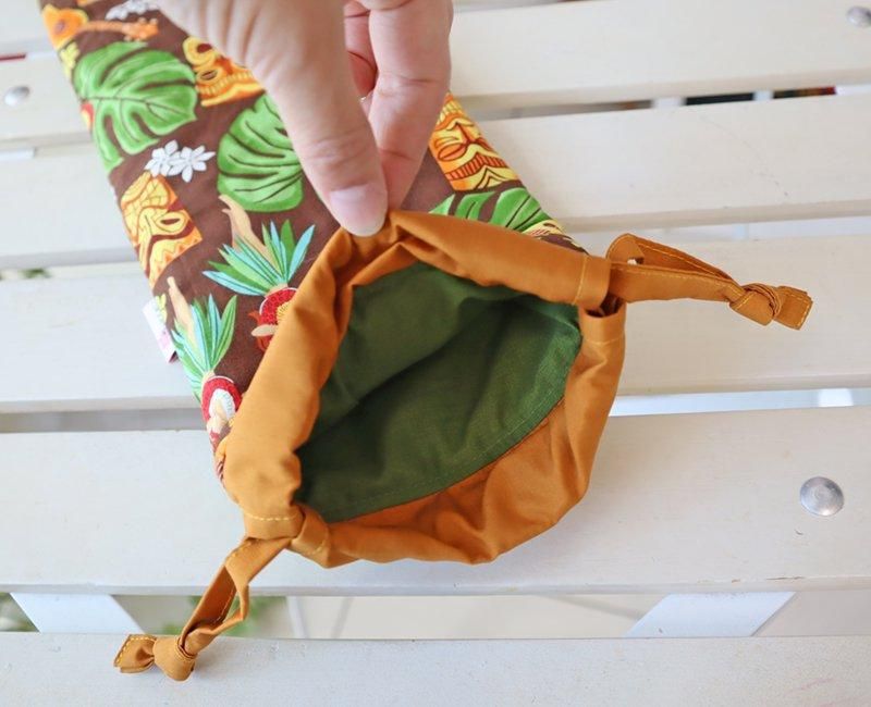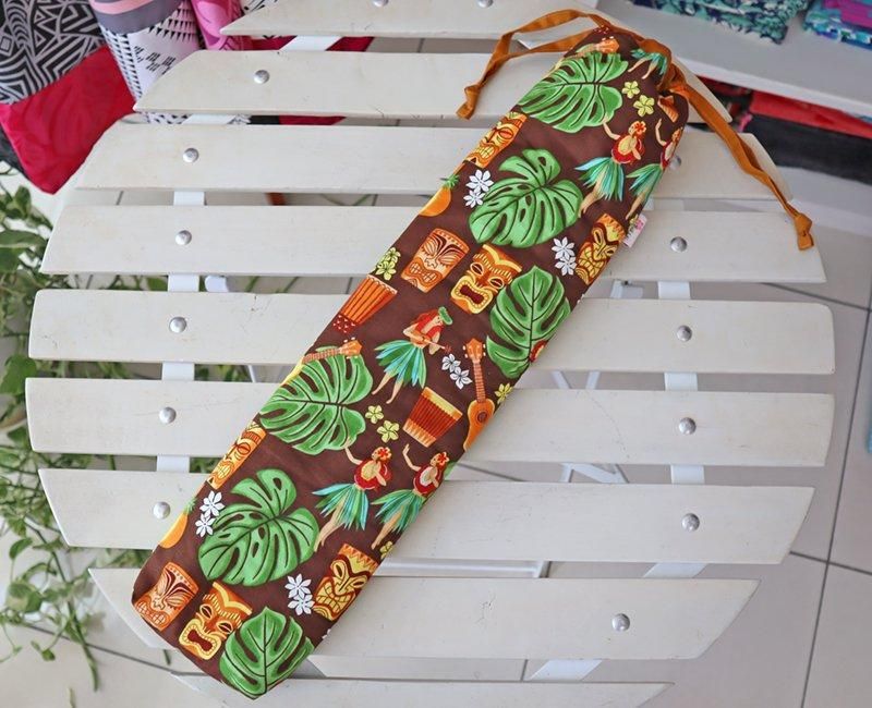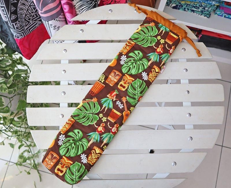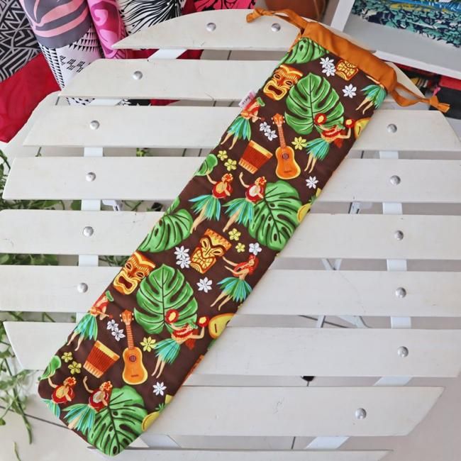 Pink lei オリジナル【1点もの】プイリケース ブラウン&イエロー・フラガール&ティキ柄