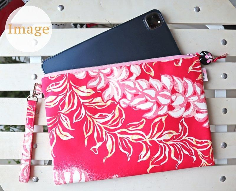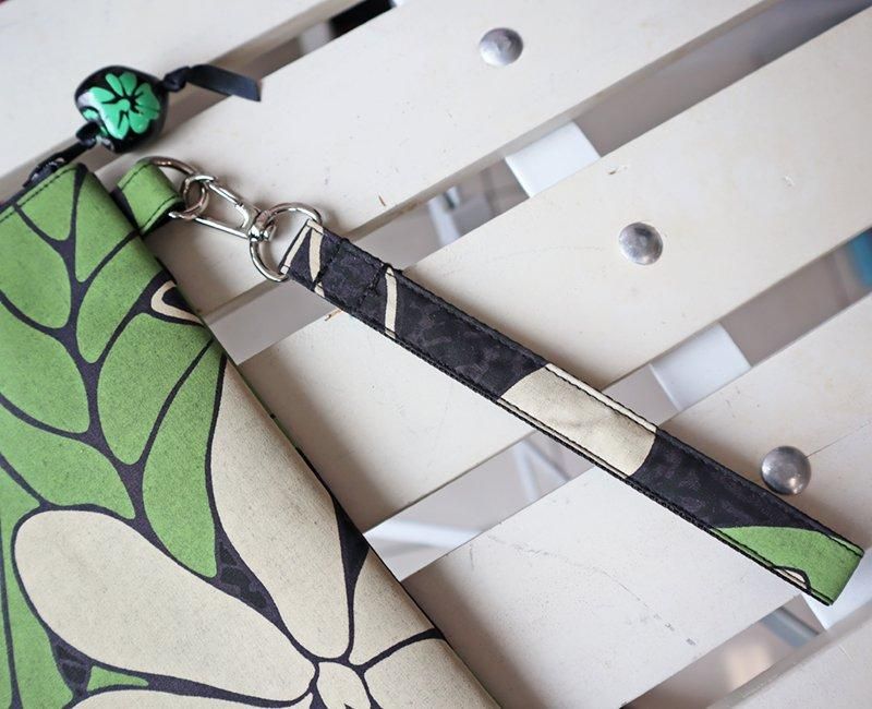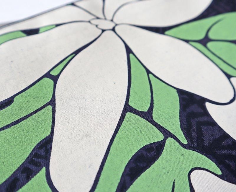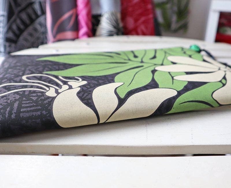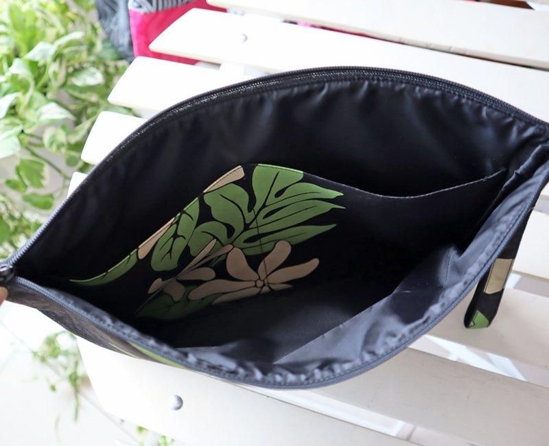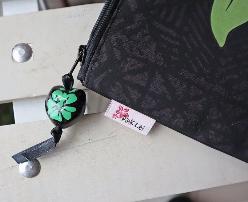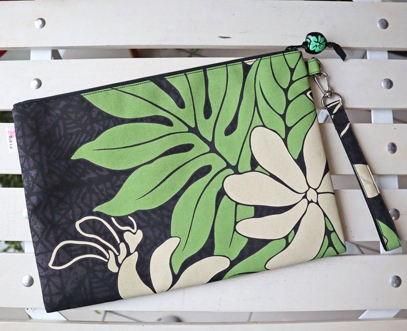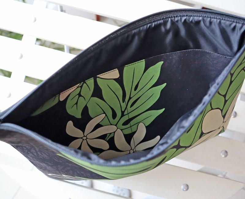 TOP > クラッチバッグ > Pink Leiオリジナル【1点もの】ハワイアンクラッチバッグ ククイ付き/ブラック&グリーン&クリーム・ティアレ柄