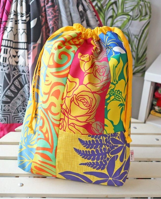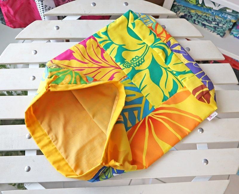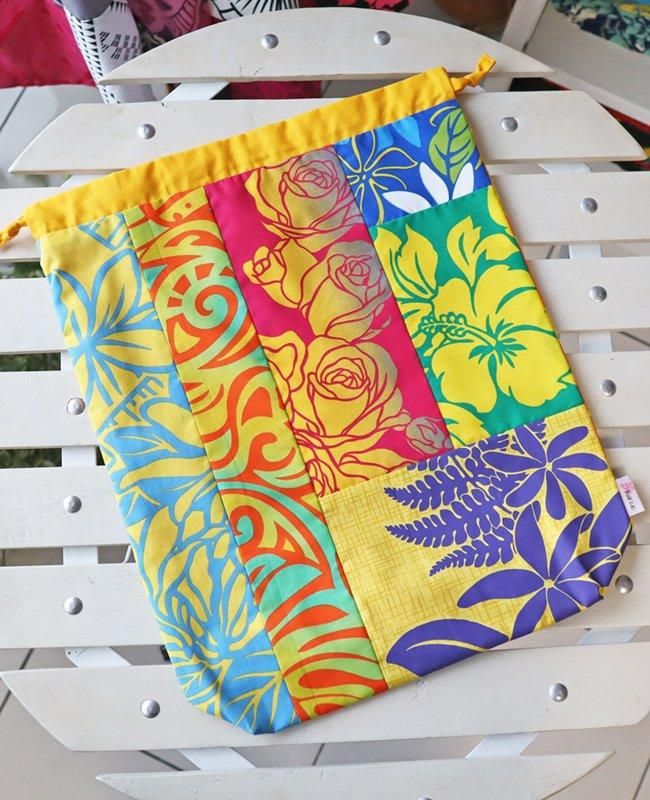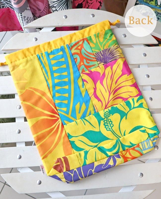 TOP > 〜新商品〜 Pink Lei オリジナル ハワイアンパッチ 巾着袋 イエローマルチ・フラワー柄【1点もの】