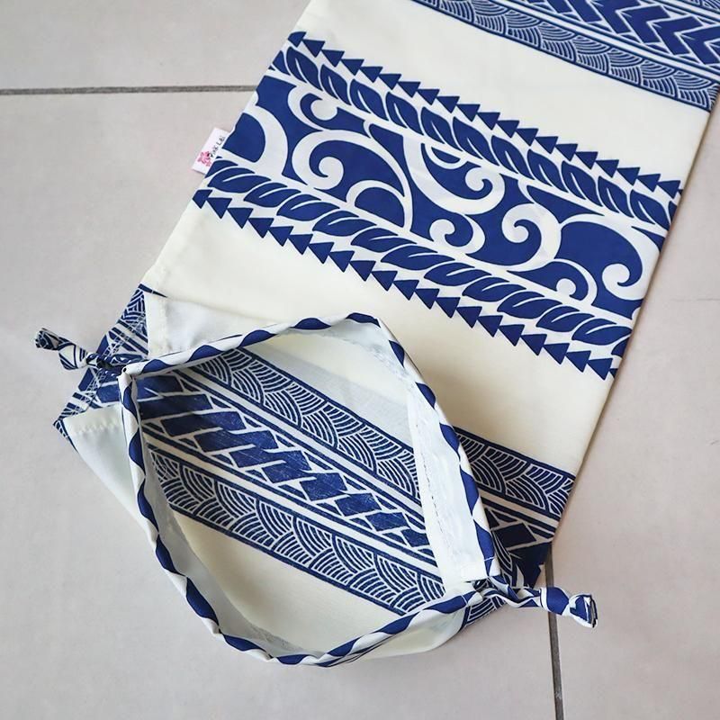 【新商品】〜 1点もの 〜 Pink Lei ハワイアンパウケース ネイビー&ホワイト/古典ボーダー柄