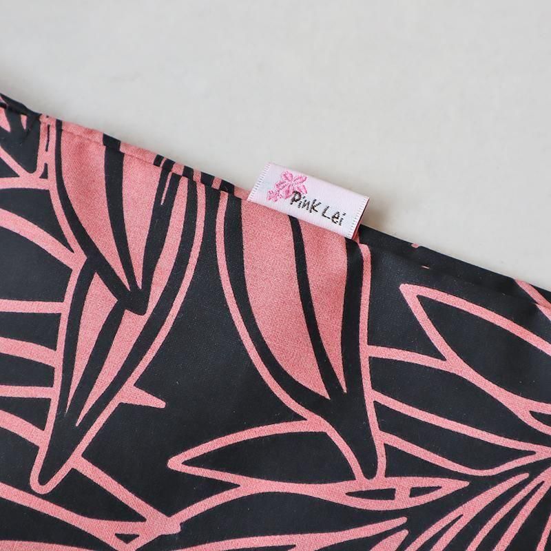 TOP > パウケース > 【新商品】〜 1点もの 〜 Pink Lei ハワイアンパウケース ブラック&サーモンピンク/リーフ総柄