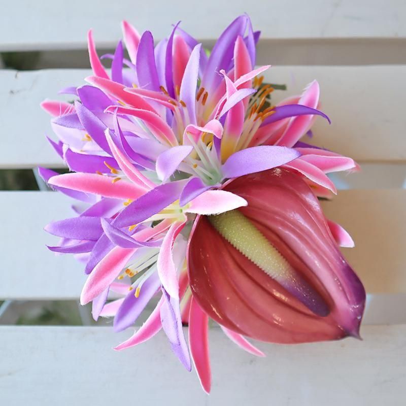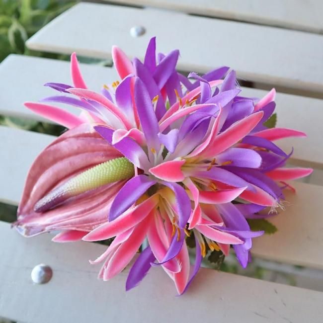 TOP > ヘアアクセサリー > Pink Lei ヘアクリップ ピンク&パープル・スパイダーリリー&アンスリウム【1点もの】【メール便定形外OK】