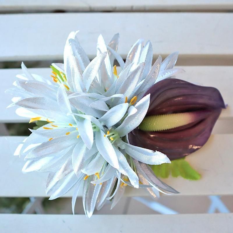 TOP > ヘアアクセサリー > Pink Lei ヘアクリップ シルバー&ホワイト・スパイダーリリー&アンスリウム【1点もの】【メール便定形外OK】