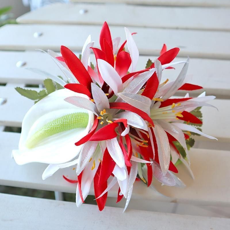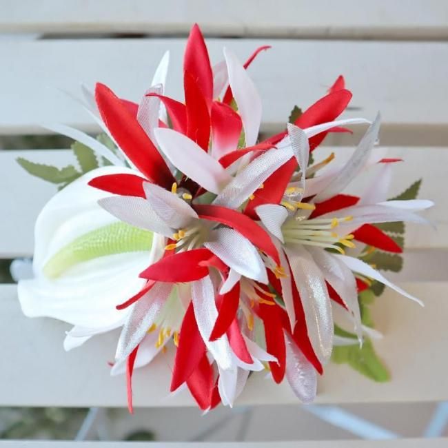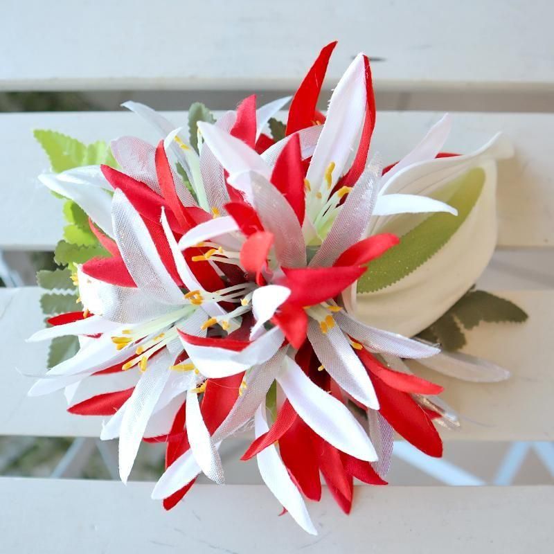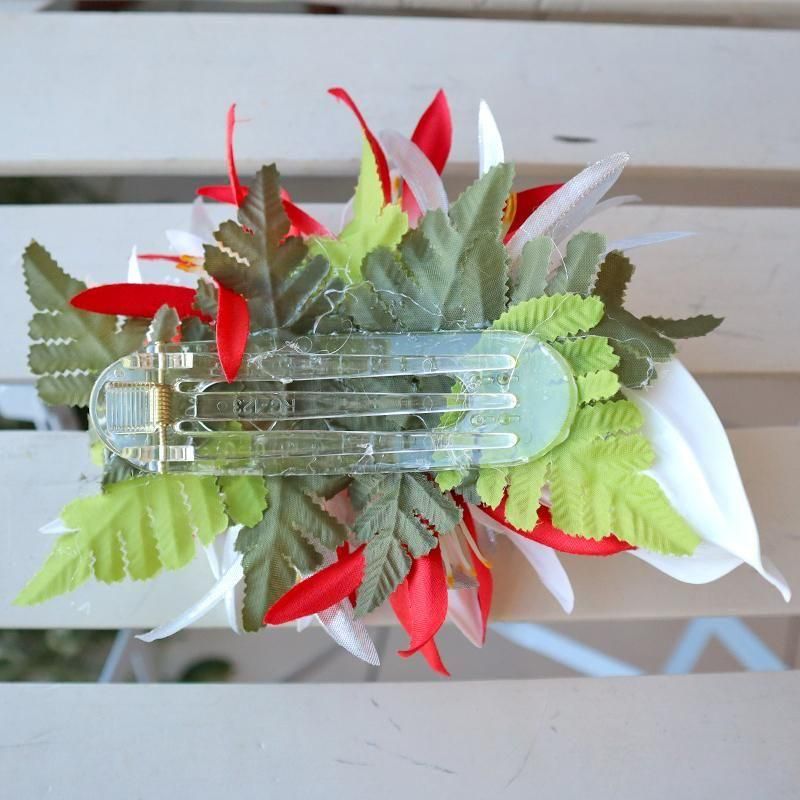 Pink Lei ヘアクリップ ホワイト&レッド・スパイダーリリー&アンスリウム【1点もの】【メール便定形外OK】