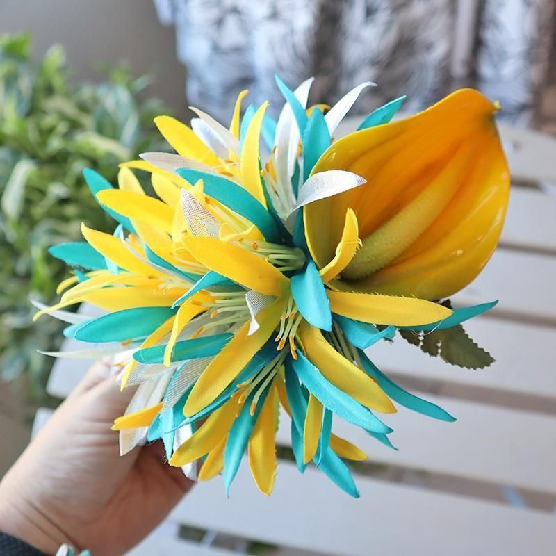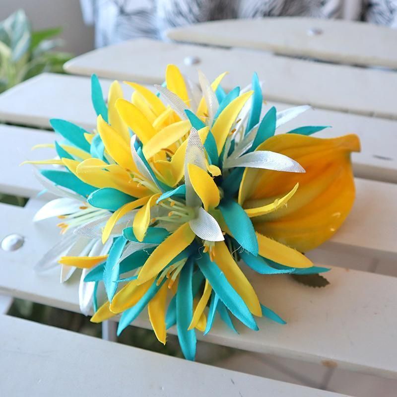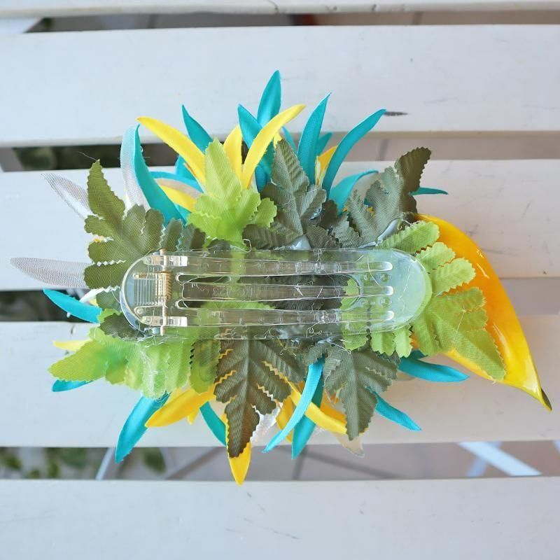 TOP > ヘアアクセサリー > Pink Lei ヘアクリップ イエロー&ターコイズ&シルバー・スパイダーリリー&アンスリウム【1点もの】【メール便定形外OK】