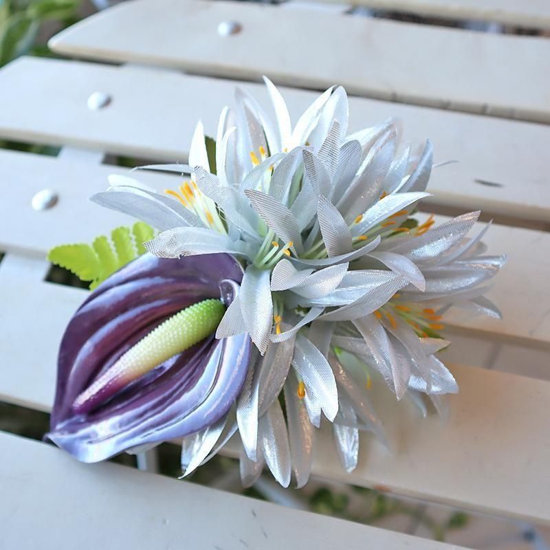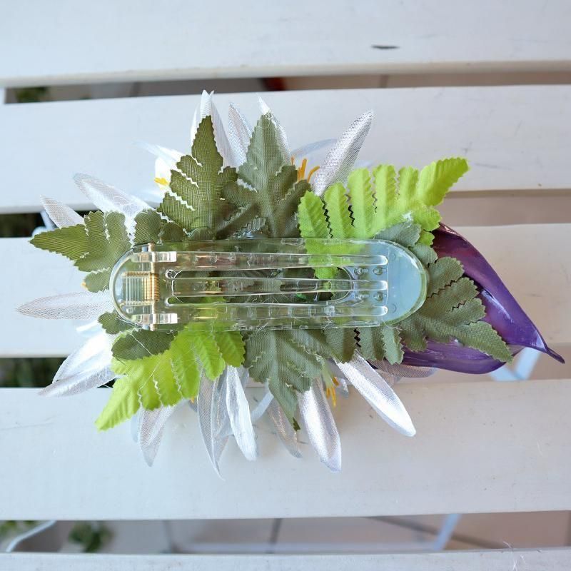 TOP > ヘアアクセサリー > Pink Lei ヘアクリップ シルバー&パープル・スパイダーリリー&アンスリウム【1点もの】【メール便定形外OK】