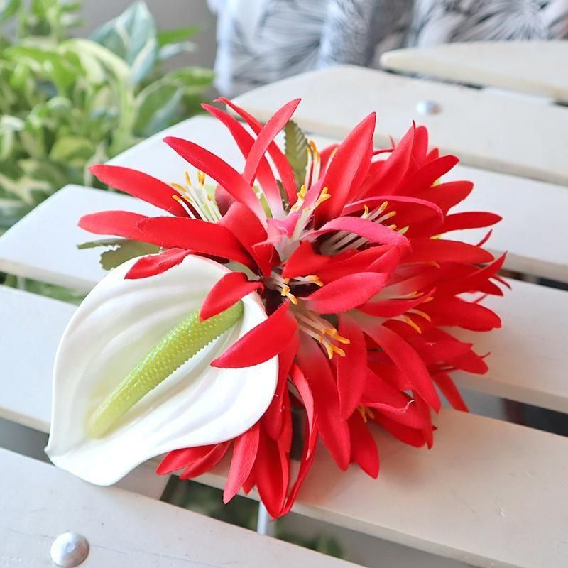TOP > ヘアアクセサリー > Pink Lei ヘアクリップ レッド・スパイダーリリー&アンスリウム【1点もの】【メール便定形外OK】