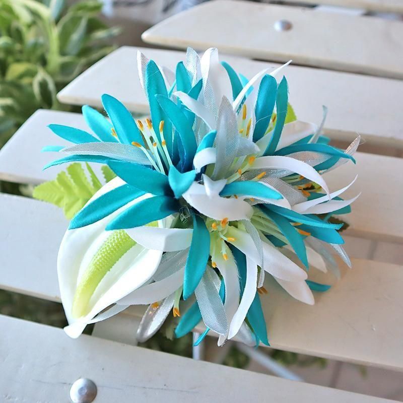 TOP > ヘアアクセサリー > Pink Lei ヘアクリップ ターコイズ&ホワイト&シルバー・スパイダーリリー&アンスリウム【1点もの】【メール便定形外OK】